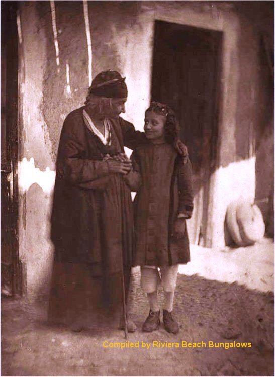 pretty little Greek girl who stands by her side. The old lady is